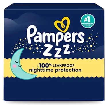 Say goodnight to overnight wakeups with Pampers ZZZ, the overnight diaper designed with 50% more absorbent zones (vs. everyday-of-the-year brand)